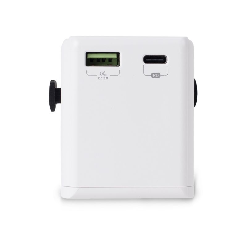 Dieser universelle Reiseadapter sorgt dafür, dass Sie Ihre Geräte überall auf der Welt an jeder Steckdose aufladen können. Er verfügt über einen USB- und einen USB-Typ-C-Anschluss.