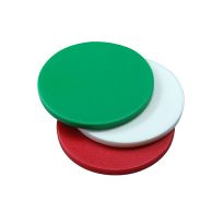 Einfacher Einkaufswagenchip aus Kunststoff mit einem Loch in der Mitte.