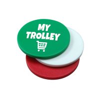 Der Klassiker: Einkaufswagenchip aus Kunststoff mit großer Veredelungsfläche.