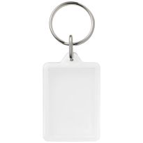Transparenter R1-Schlüsselanhänger mit Flaschenöffner und metallenem Schlüsselring. Der Metallring bietet ein flaches Profil, das sich ideal für Mailings eignet. Abmessungen der Druckeinlage: 4,0 cm x 3,2 cm.