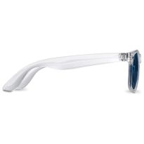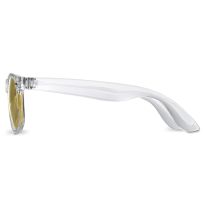 Diese Sonnenbrille im Retro-Design ist das ideale Werbegeschenk für Sommerfestivals, Veranstaltungen oder andere sonnige Outdoor-Aktivitäten. Die Brille entspricht der Norm EN ISO 12312-1, hat UV400-Gläser der Kategorie 3 und ist damit die perfekte Wahl für den Schutz vor hellem Sonnenlicht. Dank des PC-Kunststoffmaterials ist die Sonnenbrille leicht und angenehm zu tragen.