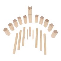 Outdoor-Wurfspiel aus Kiefernholz im Beutel aus Baumwolle mit Kordelzug. Inkl. 10 Bauern, 4 Markierungspfählen, 6 Wurfhölzern und 1 König.