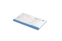 Format: 125 x 72 mm; Material: Weißes Haftpapier; Optionen: Bodenblatt individuell bedruckt; Bodenblatt rutschfest; Bodenblatt selbstklebend; individuelle Herstellerkennung auf dem Bodenblatt; Einschweißen zu 1, 10 oder 20 Stück; Druck: 4C-Quality Digital inklusive; Umfang: 50 Blatt;