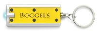 Schlüsselanhänger aus Kunststoff, mit LED-Lampe (weiß) und Metall-Schlüsselring.