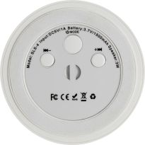 BT/Wireless-Lautsprecher aus Kunststoff, max. Entfernung zum Gerät: ca. 10 m, mit Bedienknöpfen auf der Unterseite, Wechsellicht-Funktion auf der Oberseite, USB/ Micro USB/ AUX Anschluss und TF Kartenleser auf der Rückseite, inkl. USB Ladekabel.