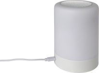 Bluetooth-Lautsprecher BOOM LIGHT mit Freisprech-Funktion : Musik-Ausgangsleistung 5 Watt, Frequenzbereich: 50 Hz - 20 kHz, Bluetooth-Version 3.0, ca. 10 m Reichweite, zur Koppelung mit Smartphone, iPhone, MP3-Player, Tablet etc., auch anschließbar an Geräte wie PC und Laptop über Line-In-Anschluss 3,5 mm Klinke (Länge ca. 57 cm), inkl. Aufladekabel mit USB-Anschluss (Länge ca. 71,5 cm), spielt MP3 über Slot für MicroSD Karte ab, Lampe mit Touchfunktion, 3 Helligkeitsstufen einstellbar, Lichtleistung: 160 Lumen (1,6 Watt), leistungsstarker aufladbarer Akku mit 1.800 mAh, Bedientasten am Sockel, Anti-Rutsch-Beschichtung am Boden und ausklappbarer Metall-Bügel zum Aufhängen
