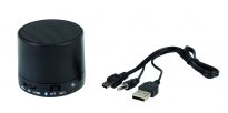 BT/Wireless-Lautsprecher aus Kunststoff, mit Handschlaufe und USB-Verbindungskabel, Input DC 5V, Output 4V/3A, Radio-Frequenz 100 HZ - 18KHZ, max. Distanz zwischen Smartphone und Lautsprecher: ca. 10 m, Laufzeit: ca. 1,5 bis 10 Std.
