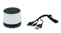 Verwenden Sie diesen tragbaren 5-Watt-Bluetooth-Lautsprecher mit hervorragendem Klang in Ihrem (Heim-)Büro oder unterwegs. Dieser kleine Lautsprecher hat eine große Druckfläche auf der Oberseite, die jedes Logo zur Geltung bringt!Geschenkverpackung: JaKabel: JaLeistung: 5WBatterien: Ja, Lithium PolymerKapazität in mAh: 600 mAhLadezeit: 2 StundenPassende Geräte: jegliches Abspielgerät mit BluetoothBluetooth: Ja