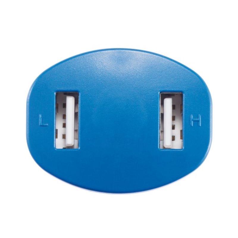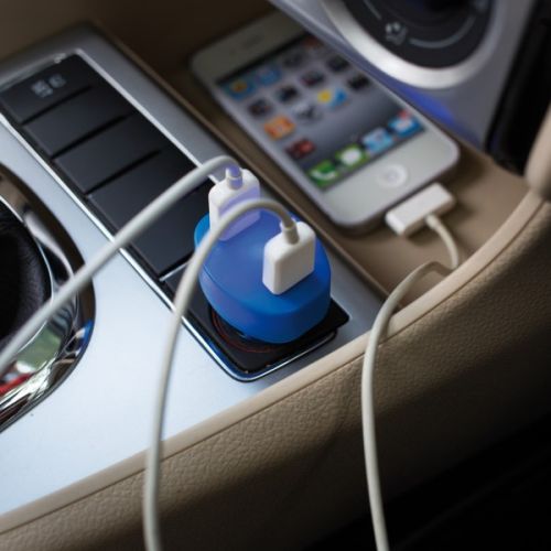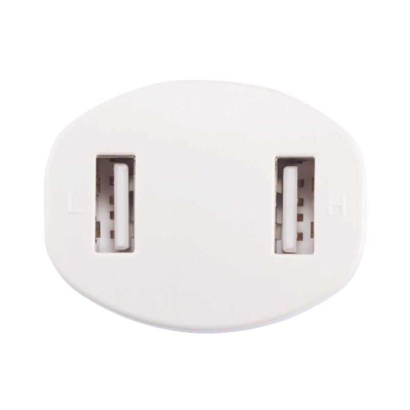 Werbeartikel Beschreibung: Tragbarer Konnektor aus Kunststoff mit 2 USB Anschlüssen - einem 5V/2.4A Output und einem 5V/2.4A Output zum Aufladen Ihrer mobilen Geräte.