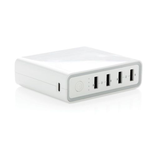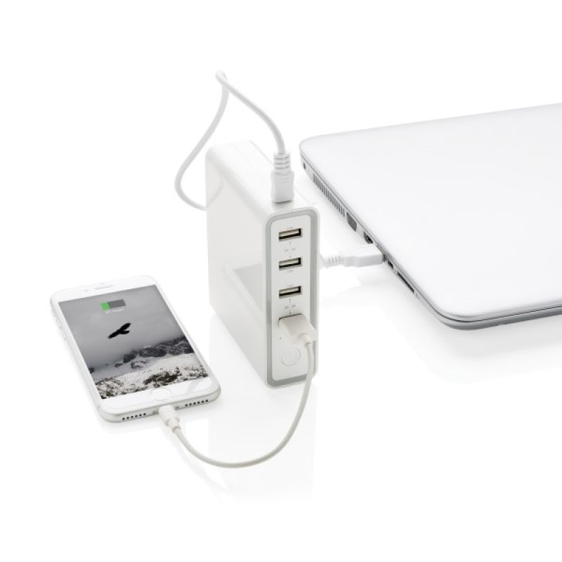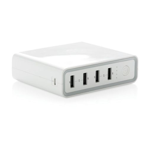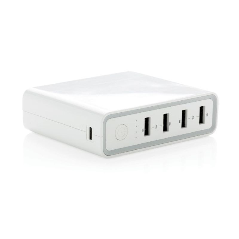 Werbeartikel Beschreibung: Kraftvolle aber tragbare 20.000 mAH Lithium Battery mit 4 USB Ports und einem Type C 3.0-Anschluß ( Input und Output). Die Powerbank kann sowohl über Micro USB ( 2A) als auch über den superschnellen Type C-Anschluß ( 2.4 Input) geladen werden. Output der 4 USB: 5V/2A - Output Type C: 5V/3A, 9V/3A,12V/3A, 14.5V/2.4A, 20V/2A.