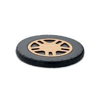 Kabellose Ladestation 15W in Optik eines Autoreifens. Recyceltes ABS mit Bambus-Dekor. Verbinden Sie das Gerät mit dem Computer und laden Sie Ihr Smartphone durch einfaches Auflegen auf. Ausgang: DC 9V/1.10A (15W) für schnelles Aufladen. Kompatibel mit allen QI-fähigen Geräten wie den neuesten Android Smartphones, iPhone® 8 und X und höher.