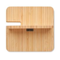Bamboo Wireless charger with 2 USB hubs 5W