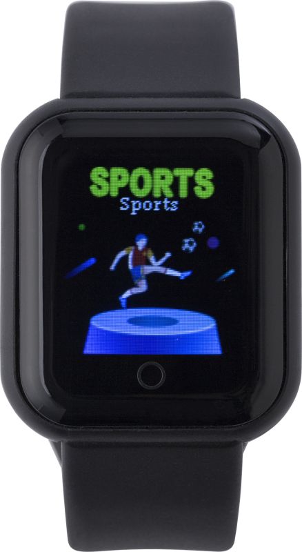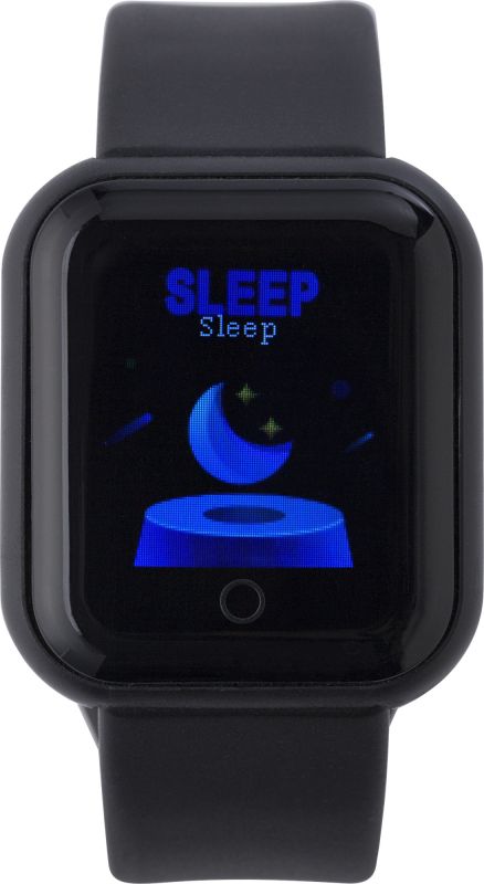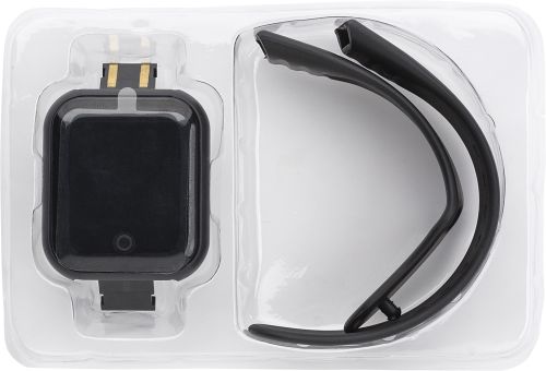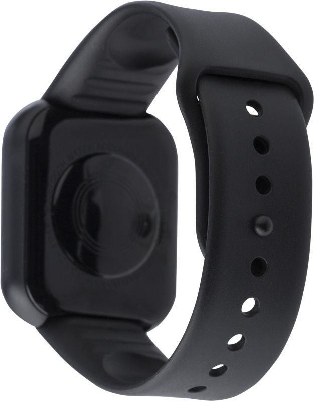 Werbeartikel Beschreibung: Intelligente Uhr aus PET und PVC mit verstellbarem Armband und drahtloser Technologie. Mit kleiner Taste unterhalb des Bildschirms. Funktionen: Herzfrequenz, Schlafüberwachung, Sauerstoffmessung, Nachrichtenerinnerung, Trinkwassererinnerung, Trainingserinnerung. USB-Ladegerät im Armband versteckt.