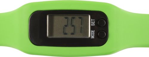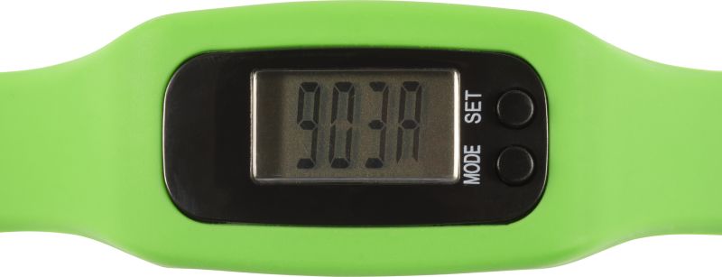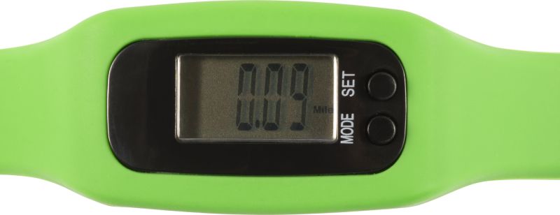 Werbeartikel Beschreibung: Schrittzähler “Step“ mit Silikonarmband. Zählt bis zu 99.999 Schritte, sowie Kalorien und Kilometer/Meilen. DC: 1.5V