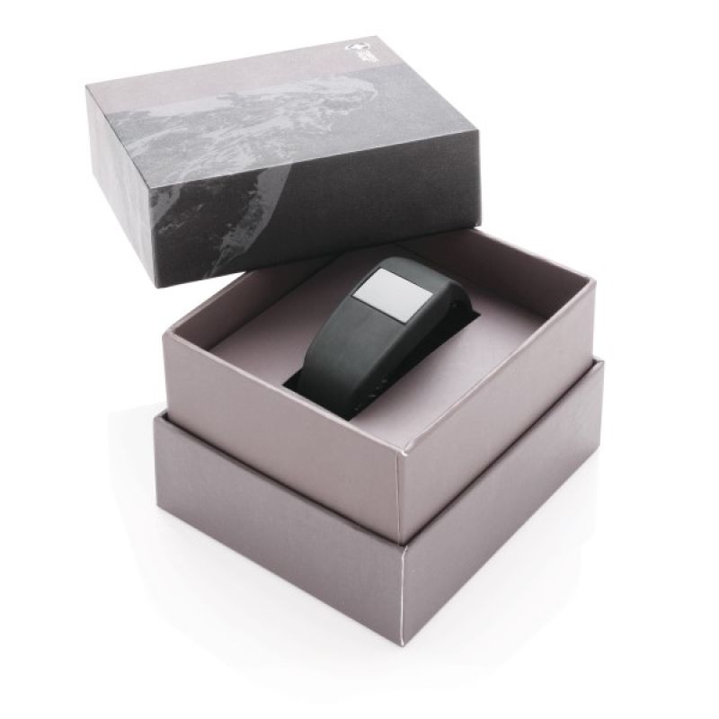 Werbeartikel Beschreibung: State-of-the-Art Fitnesstracker von Swiss Peak. Das Armband, das Ihnen hilft, Ihren Lebensstil zu verbessern. Die 4.1 BT Technologie misst Ihre Schlafphasen, die getätigten Schritte, die verbrannten Kalorien und Ihren Puls. Ebenso können Sie hierüber die Kamera Ihres Smartphones ansteuern. Das Armband ist wasserdicht und die Batterie hält ca. 5 Tage mit einer Ladung. Die Swiss Peak App finden Sie sowohl im GooglePlayStore als auch im AppStore. Kompatibel mit iOS 7.1 oder höher und ab Android 4.3.