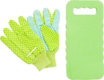 Gartenset, bestehend aus einer Knieauflage aus EVA-Schaum und Handschuhen (Einheitsgröße) mit Gummierung für einen besseren Griff und Bündchen mit Gummizug.