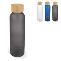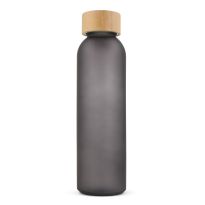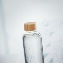 Trinkflasche aus Glas (500 ml) mit Drehverschluss aus Bambus und Silikonband.