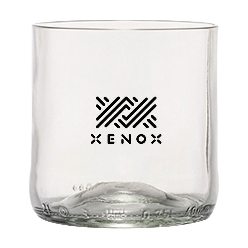 Werbeartikel Beschreibung: Ein Design Trinkglas hergestellt aus einer recycelten Weinflasche. Ein einzigartiges Glas der Marke Rebottled®, in dem man die Original-Weinflasche sofort erkennt. Das Glas liegt gut in der Hand und hat eine glatte Oberfläche. Von hoher Qualität und geeignet für Wasser, Softdrinks oder Wein. Spülmaschinengeeignet bis 60°C. Um den Aufdruck zu erhalten, wird Waschen von Hand empfohlen. Pro Stück in einer originellen Geschenkbox aus recyceltem FSC®-zertifiziertem Karton geliefert. Niederländisches Design. Made in Holland. Fassungsvermögen ca. 175 ml. Aufdruck nur in schwarz oder weiß möglich. Rebottled® ist eine Marke, die leere Weinflaschen zu 100% kreisförmige Designobjekte upcycelt.