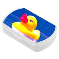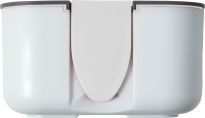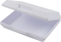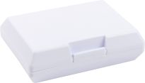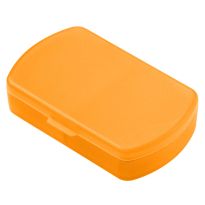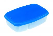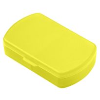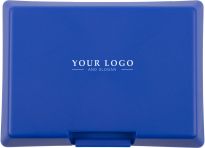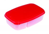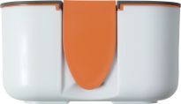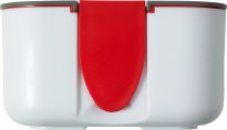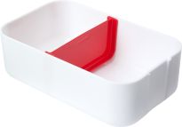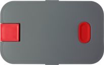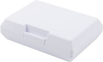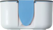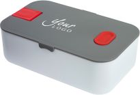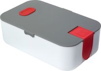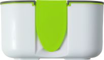 Handliche Aufbewahrungsdose aus lebensmittelechtem Kunststoff mit 2 abgetrennten Fächern und Klickverschluss. Durch die glatte Oberfläche ist eine optimale Ausnutzung der Werbefläche möglich.
