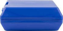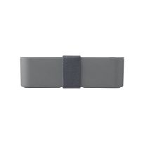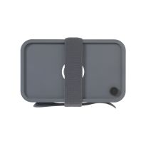 Brotdose (ca. 850 ml) aus Silikon und Kunststoff, trennbares Innenfach, mit farbigen Applikationen. Der Deckel kann als Handyhalter benutzt werden. Nicht spülmaschinengeeignet.
