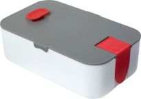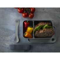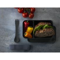 Lunchbox TASTY : mit zwei getrennten Fächern zum Befüllen, Messer und Gabel aus Kunststoff im Deckel mit Zusatzfach integriert