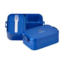 Lunchbox „Bento” der Marke Mepal. Die Lunchbox ist mit zwei separaten Fächern und einer zusätzlichen Box mit Gabel ausgestattet. Bento ist robust und verfügt über einen praktischen Verschluss. Der Deckel schließt perfekt und ist mit einem Dichtungsring versehen, damit der Inhalt lange frisch bleibt. Die Bento-Schalen in der Lunchbox sind mikrowellenfest (ohne Deckel). Ein hochwertiges Qualitätsprodukt. Fassungsvermögen 1,5 l. Geeignet für bis zu 8 Butterbrote. BPA-frei und für Lebensmittel zugelassen. 2 Jahre Mepal Herstellergarantie. Made in Holland. LAGERINFORMATION: Bis zu 1.000 Stück innerhalb von 10 Arbeitstagen lieferbar. Ausnahmen vorbehalten.