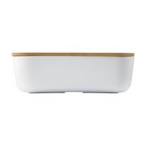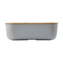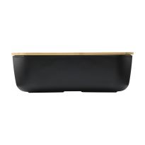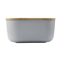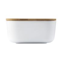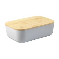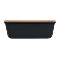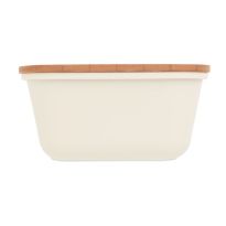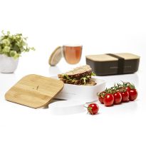 Lunch- oder Sandwichbox aus PP mit Deckel aus Bambus. Bambus ist ein natürliches Produkt, es kann daher zu leichten Abweichungen in Farbe, Dekor und Maßen kommen.