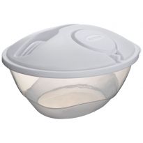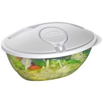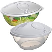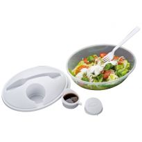 Salatbox aus Kunststoff mit einem Fassungsvermögen von 1300 ml. Durch den im Deckel integrierten Salatsoßenbecher (50 ml) sowie die integrierte Kunststoffgabel können Sie Ihren Salat überall frisch genießen. Ihre Werbung drucken wir auf den Deckel.