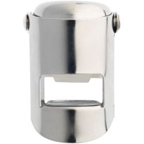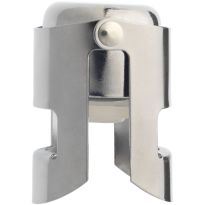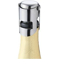 Stilvoller Flaschenstopfen aus Edelstahl für das luftdichte Verschließen von Champagnerflaschen und Weinflaschen mit Korken.