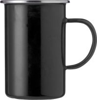Tasse aus Emaille mit einem Füllvermögen von 300 ml. Ideal für Camping, Festivals, Picknick, die Küche oder das Büro. Ihre Werbung wird auf eine Seite gelasert.