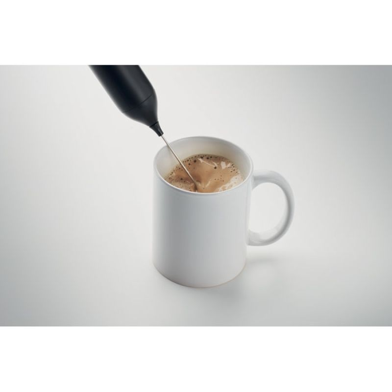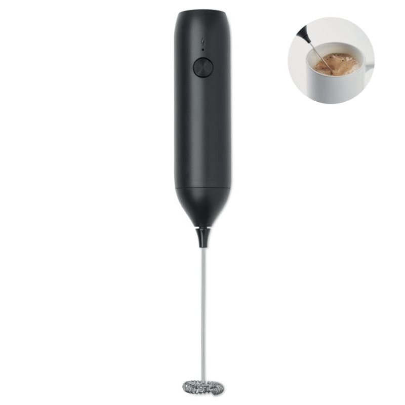 Werbeartikel Beschreibung: Elektrischer Milchaufschäumer. ABS mit mattem Finish. Eingebauter Akku 500 mAh. Wiederaufladbar per USB Typ-C Kabel (im Lieferumfang enthalten). Drehzahl: 10 000 U/min.