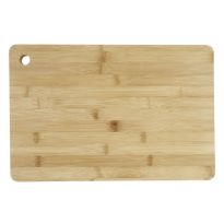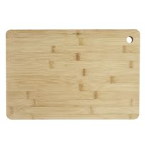 Großes Schneidebrett aus Bambusholz mit Aussparung zum praktischen Aufhängen. Bambus ist ein natürliches Produkt, es kann daher zu leichten Abweichungen in Farbe, Dekor und Maßen kommen.