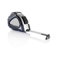 3m/16mm, Kunststoffgehäuse mit Applikationen im Karbonlook, silbernem Band und automatischem Stopper.
