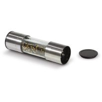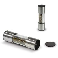 Salz- und Pfeffermühle mit straffem Design aus Metall in Kombination mit transparentem Kunststoff. Per Hand zu bedienen und ideal für jede Küche. Pro Stück in einer Schachtel verpackt.