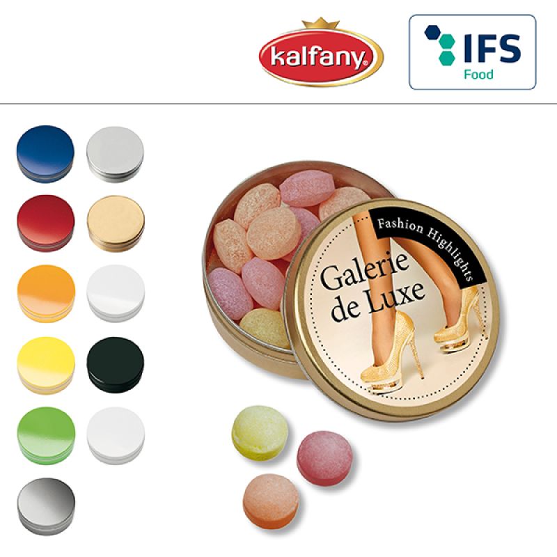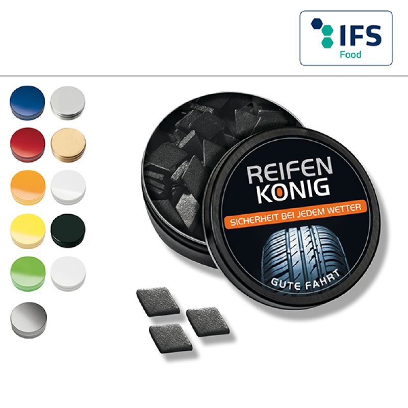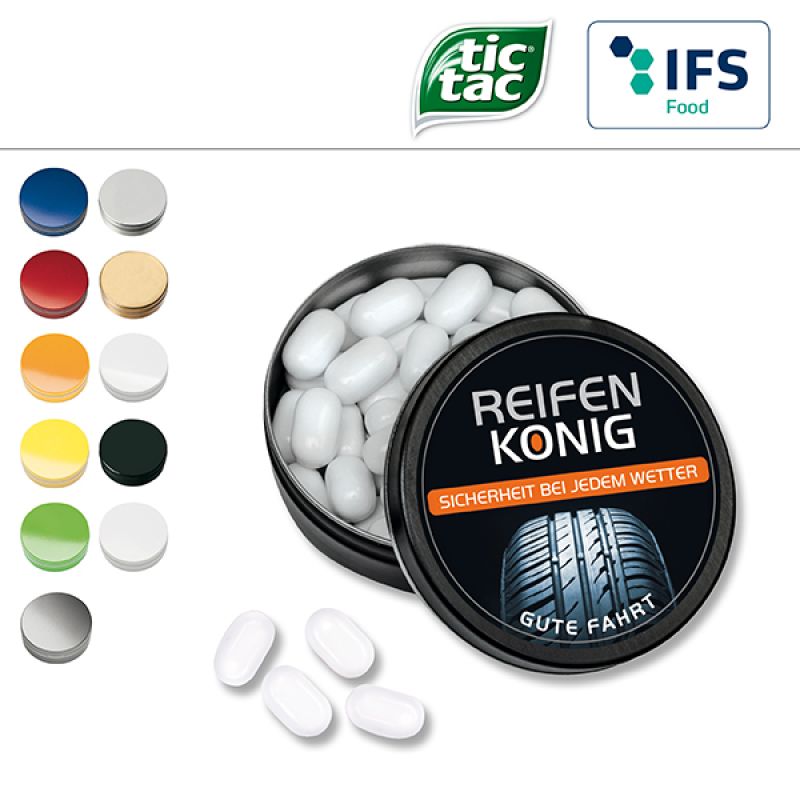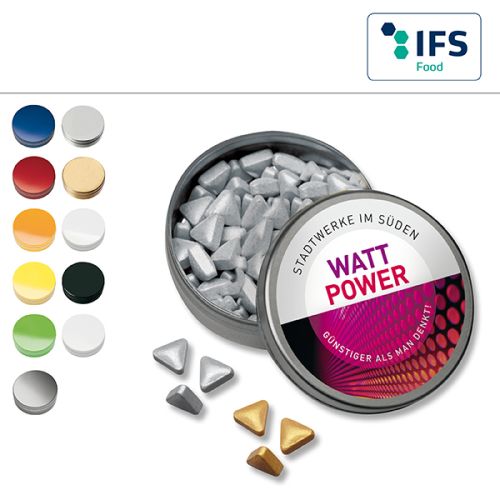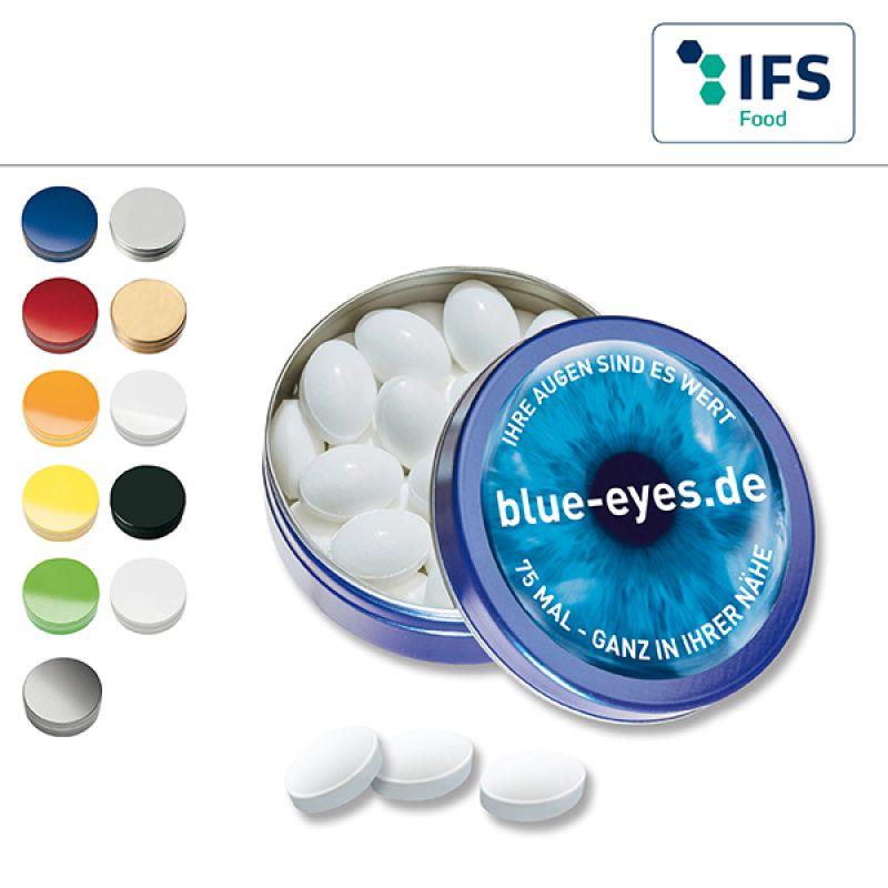 Werbeartikel Beschreibung: XS-Taschendose mit Pfefferminzpastillen / Preise pro Stück inkl. Werbeaufdruck 1-farbig zzgl. Nebenkosten. Allgemeine Süßigkeiten-Beschreibung: Füllung: Zuckerfreie Pfefferminzpastillen, Ø 9 mm, Standardmotive: weiß-glänzend | silber-glänzend | gold-glänzend | orange-glänzend | gelb-glänzend | grün-glänzend | weiß-matt | schwarz-matt | silber-matt | blau-metallic | rot-metallic, Haltbarkeit ca. 18 Monate bei sachgerechter Lagerung- XS-Taschendose mit Pfefferminzpastillen für Ihre Süße Werbung mit Geschmack.