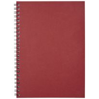 Dieses A4 Notizbuch enthält einen weißen oder schwarzen Draht, 80 g/m2 Blankopapier und eine glänzende Vorder- und Rückseite aus Karton (250 g/m2). Das Standardmodell wird mit 50 Blatt geliefert, aber das Notizbuch ist auch mit 80 Blatt erhältlich. Bedruckung ist sowohl auf den Blättern als auch auf der Vorder- und Rückseite möglich.