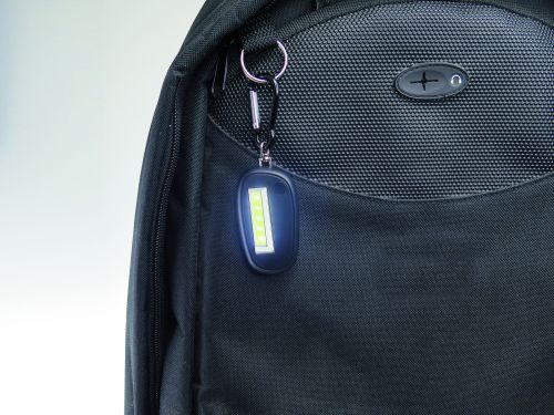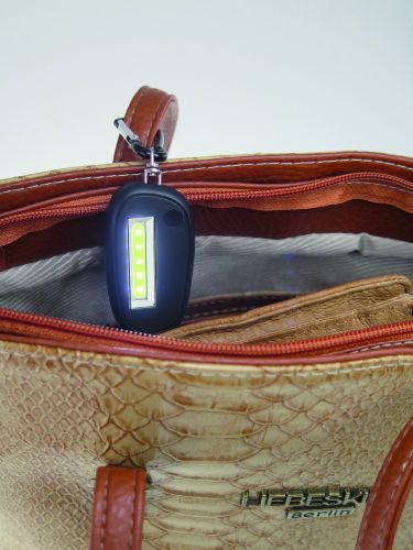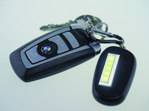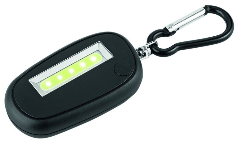 Werbeartikel Beschreibung: Absolut helle Schlüsselleuchte bei sparsamem Verbrauch. 1Watt, COB Technologie, VPE 200. Schlüsselkarabiner, Batterien und -stopper, Designkarton