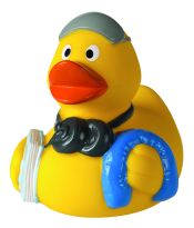 Quietsche-Ente Doktor. Doktor Ente sorgt sich sehr um Ihr Wohlergehen, mit Stethoskop und Kopfleuchte ausgestattet, kann er jedes noch so kleine Wehwehchen ausfindig machen und behandeln und er macht sogar Hausbesuche in Ihrer Badewanne! Quietsche-Ente "Doktor", Produktion gemäß EN71