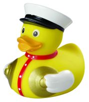 Quietsche-Ente Matrose. Unser Matrose ist bereit Ihre Badewanne zu erkunden! Feucht fröhliche Abenteuer sind da garantiert: Die Schaumlandschaften in Ihrer Wanne wollen besegelt werden… Der Matrose ist der Richtige für alle Wasserratten und freut sich den Anweisungen eines jeden Badewannenkapitäns Folge zu leisten. Quietsche-Ente "Matrose", Produktion gemäß EN71