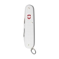 Victorinox-Taschenmesser mit acht Funktionen: große Klinge, Schlüsselring, Flaschenöffner, Dosenöffner, Schraubenzieher (5 mm), Drahtzieher, Zahnstocher und Pinzette. Einzeln verpackt im Geschenkkarton.
