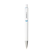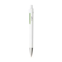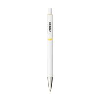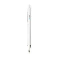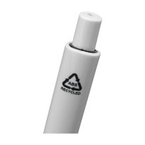 Blauschreibender Kugelschreiber aus recyceltem ABS. Der Clip/Druckknopf ist mit einem auffälligen farblichen Akzent gestaltet und bietet Platz für einen großzügigen, digitalen Vollfarbaufdruck. GRS-zertifiziert. Recyceltes Material insgesamt: 85%.