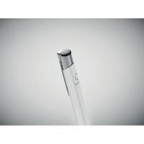 Moderner transparenter Kugelschreiber mit einem gebogenen Clip aus R-PET-Material. R-PET bedeutet recycelten PET-Kunststoff. Mit einer großen Druckfläche ist es ein idealer Werbeartikel. Der Druckkugelschreiber wird mit einer blau schreibenden X20-Refill-Mine geliefert.Mechanismus: DruckmechanismusStandardschreibfarben: blauMinenart: X-20Optionale Schreibfarben: schwarz