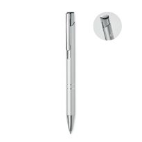 Kugelschreiber aus recyceltem Aluminium in lackierter Ausführung, poliert, glänzend, mit markanten Chromdetails. Recyceltes Aluminium ist eine nachhaltigere Option, da weniger Energie benötigt wird als bei der Herstellung von Aluminium aus Primärrohstoffen. Es reduziert außerdem die Abfallmenge auf Mülldeponien und trägt dazu bei, natürliche Ressourcen zu schonen und Treibhausgasemissionen zu reduzieren. Schwarze Tinte. Schreiblänge: 600 Meter.