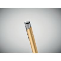 Langlebiger Druckkugelstift mit einem Schaft aus Bambus und glänzenden Details aus Chrom. Der Stift schreibt mittels Grafitspitze. Da Bambus ein natürliches Material ist, können Farbton und Maße pro Artikel variieren. Dies kann Abweichungen im Ergebnis der Veredlung führen.