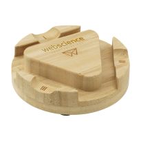 Kabellose 10W Ladestation aus Bambus mit Smartphone-Halter. Ausgang: DC 9V/1.1A geeignet für Schnellladung. Kompatibel mit den neuesten Androiden, iPhone® 8 und neueren Modellen. Bambus ist ein natürliches Produkt, es kann daher zu leichten Abweichungen in Farbe, Dekor und Maßen kommen.