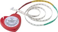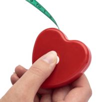 Herzförmiges stabiles Lineal aus recyceltem Kunststoff mit Markierungen in Zoll und Zentimeter.