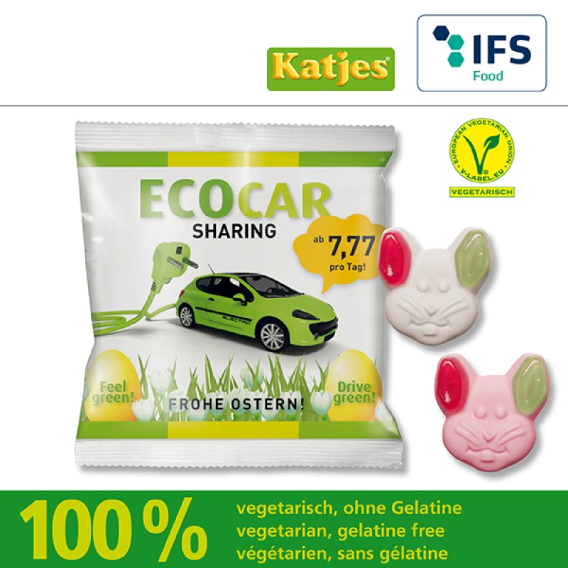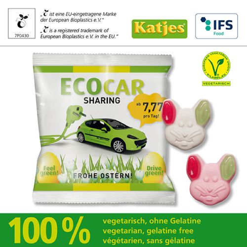 Werbeartikel Beschreibung: Katjes Veggie Grün-Ohr-Hase / Preise pro Stück inkl. Werbeaufdruck 1-farbig zzgl. Nebenkosten. Allgemeine Süßigkeiten-Beschreibung: Füllung: Katjes Veggie Grün-Ohr-Hase, Haltbarkeit ca. 6 Monate bei sachgerechter Lagerung- Katjes Veggie Grün-Ohr-Hase für Ihre Süße Werbung mit Geschmack.