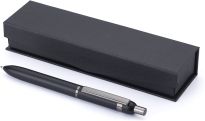 Kugelschreiber aus Metall, mit Drehfunktion, Metall-Clip, schwarzer Mine und Etui mit Magnetverschluss.