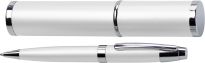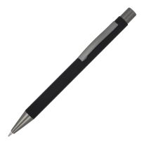 Moderner schlanker Aluminium Kugelschreiber mit Stylus Funktion. Der Kugelschreiber hat eine Softtouch Oberfläche und ist ausgestattet mit einem schwarzen Clip, Ring und Spitze. Drehmechanik. BlauschreibendMechanismus: DrehmechanismusStandardschreibfarben: blauMinenart: Metal giant refill