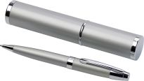 Kugelschreiber aus Metall, mit Drehfunktion, Metall-Clip, schwarzer Mine und XXL-Etui. Ausgestattet mit deutscher Dokumententinte.